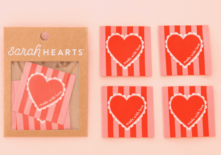 Etiquettes à coudre Grands Coeurs Rouge - Sarah Hearts
