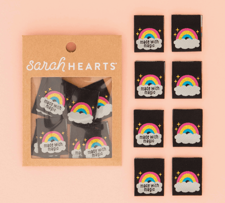 Etiquettes à coudre arc en ciel et nuage, texte Made with magic - Sarah Hearts