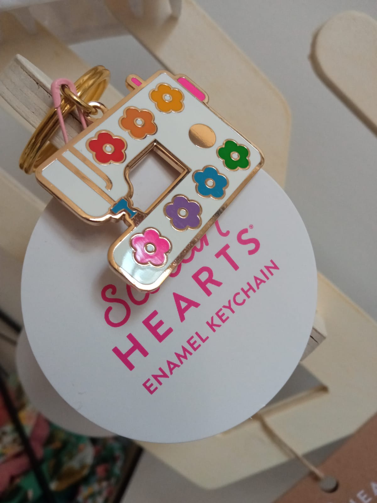Craquez pour ce porte-clé en métal en forme de machine à coudre, un accessoire à la fois pratique et plein de caractère.